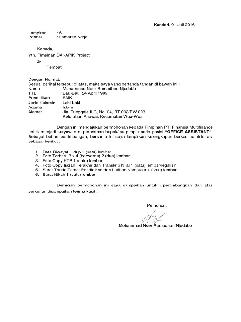 Contoh Surat Lamaran Kerja Di Pt Soetwon Kasokandel 30 Contoh Surat Lamaran Kerja Doc Yang Bagus Dan Benar Ikuti Panduan Yang Bisa Kamu Tiru Agar Dilirik Oleh Hrd Alfazhamuhid from contohsurat.co Contoh surat lamaran kerja di pt soetwon kasokandel / format penulisan surat lamaran kerja, beberapa tips dan contoh surat lamaran kerja secara umum yang baik dan benar di pt dalam bahasa indonesia saya memiliki pengalaman bekerja sebagai pemasaran produk di pt. Maka tidak heran ketika banyak orang membidik perusahaan dengan status pt (perseroan terbatas). Jul 14, 2021 · melalui surat lamaran kerja ini, saya menyatakan ketertarikan saya untuk menjadi karyawan di pt asuransi central asia sebagai service quality control. Sama hal nya ketika anda ingin melamar kerja di pt. Majalengka 45453 (depan polsek kasokandel). Apr 25, 2021 · 15+ contoh surat lamaran kerja di pt kai terlengkap dan penjelasannya. Apalagi jika mendapatkan pekerjaan di perusahaan bergensi dengan skala nasional atau international. Siapa bahasa yang digunakan untuk menulis surat lamaran kerja?