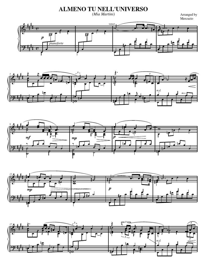 The song was performed for the first time by mia martini during the sanremo music festival in 1989, where it placed 9th in a field of 24, receiving the critics award, which was later entitled to martini herself. Un piccolo tributo alla grande mimì. Almeno tu nell'universo mia martini base karaoke Anna tatangelo, carly paoli, chiara galiazzo, elisa (italy), fausto leali, fiordaliso. Almeno tu nell'universo (english translation) artist: